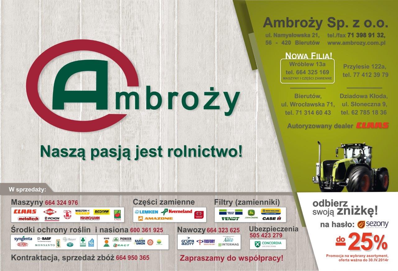 Reklama Ambroży Sp. z o.o. w nowym miesięczniku rolniczym „Sezony”.